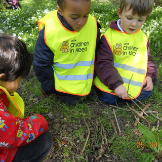 On our welly walk last week one of the children called out to tell us that they had found a peacock! Whilst we were pretty confident that it wasn't a peacock, we weren't sure if it was all part of an elaborate role play, or reality. Sure enough, hidden amongst the wild garlic was a male pheasant. The children kept their distance, but had a careful look. When we returned from our walk, we went on to find out more about pheasants. This got us talking about nests and a few days later, a parent brought in a nest that had fallen from a tree near their house. The children were fascinated.